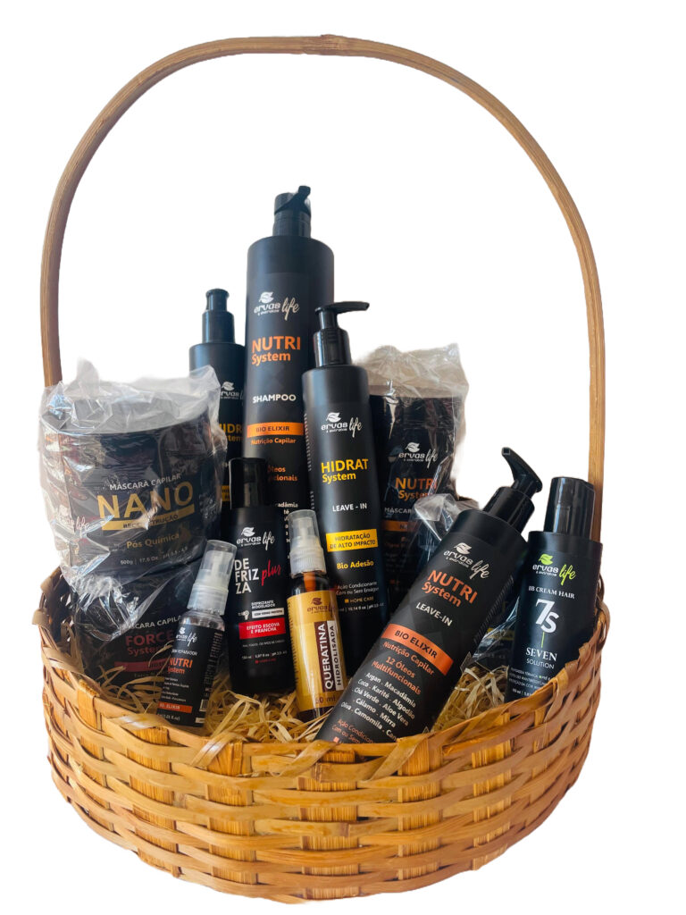 Cesta de cosmeticos Ervas Life com 12 Produtos para cuidar do seu cabelo ou presentear alguém especial